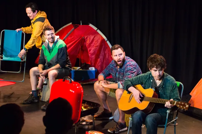 “Cynical and raw, hilarious and squirm-inducing, the play asks just how liberal “woke” boys really are when they’re alone together, out in nature, beers in hand,” so the synopsis for Jonathan Caren’s Four Woke Baes goes. I was sceptical: it’s quite common for male-centred comedy to make fun of men not being “woke” (enough or at all) and it is quite difficult to do it well, It’s Always Sunny in Philadelphia pretty much being the champion of it. Despite this scepticism, I quickly found myself won over by the dark comedy of Caren’s script, the funny and smooth interplay between the cast, and the quick wit and philosophy of the dialogue and characterisation.