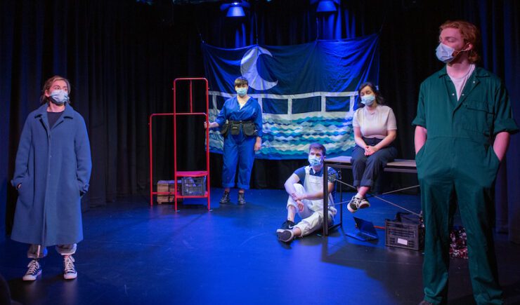 The five performers who interweave the stories into one piece are all dressed in boiler suits and dungarees, which are varyingly used to present different characters. The narration is crafted poetically and to hit specific beats that lead into different story moments. Intermittently there are songs which are folky in nature and make use of some great harmonies.