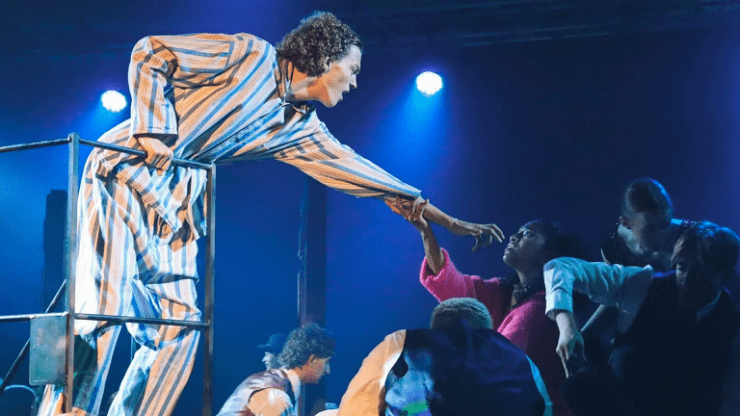 K bends through corridors and paperwork, meeting characters who present him with walls and barriers to his Trial. Confusingly, the vaccine trial and the imaginary judiciary trial are never fully linked up. Nonetheless, we are treated to ensemble singing and movement which appears monumental and vast. It’s a real treat for the eyes and ears, but you do feel like you’re waiting for that moment where everything comes together. The moment comes and passes, leaving you wondering what just happened and for what purpose.