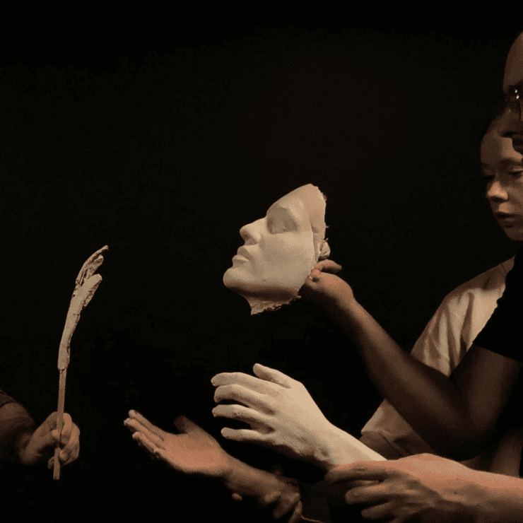 “Our main puppet consists of three life casts, one of my own face and two of my arms creating a life-like white solid sculpture; here we first started using wax which was a little too fragile and then plaster which proved to be too heavy. In the end we used wood epoxy which has all the qualities of the former two i.e., lifelike, and solid but with the added qualities that it is also strong and light to manoeuvre. making the life casts was very exciting, there was a lot of trust involved as my entire face was covered in first a purple gooey silicone and then layers of plaster bandages, just my nostrils were free to breath, it took around 30 min. Pascale, my mother, is a medical artist and focuses on making realistic anatomical sculptures. She is also our puppet maker!