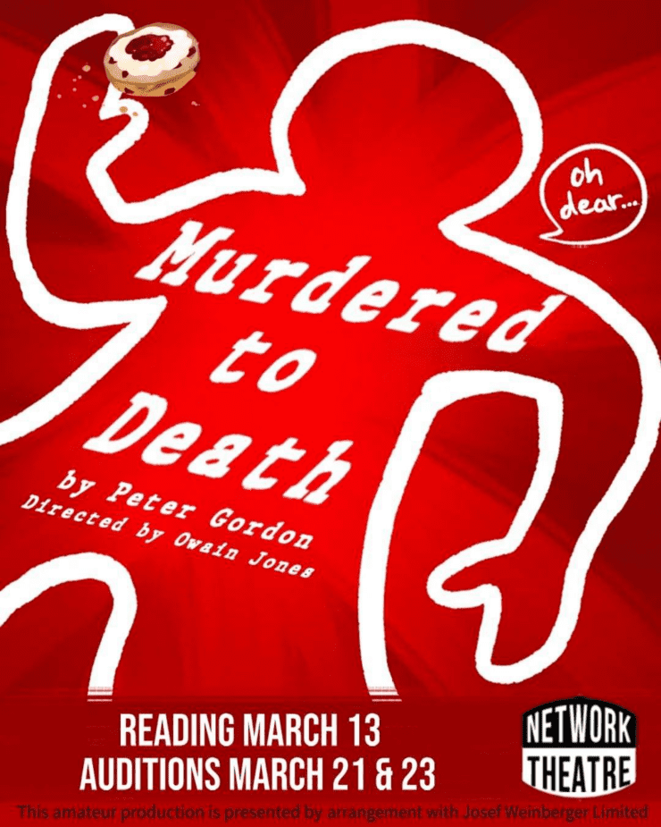 Be sure to catch Murdered to Death at Network Theatre from 17th – 20th May 2023. Tickets are available at www.networktheatre.org. Run time 2 hours 20 minutes including the interval. All performances have open captions.