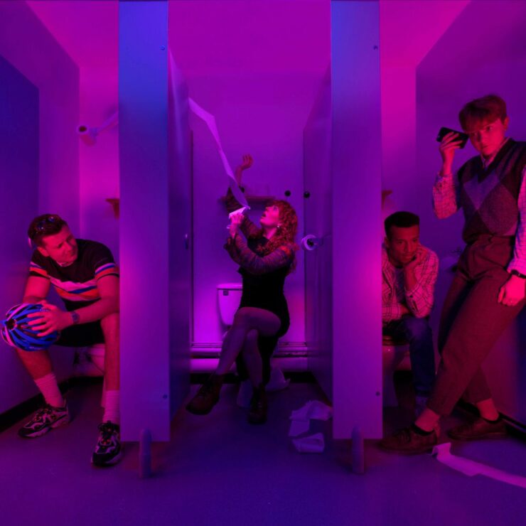The writing from Kyla Stroud, Hannah Sands, and Natalie Stroud delivers punchy quips that aim directly at the heart of the debates they cover – the jokes never feel at the expense of anyone’s characteristics, abilities, or views, and yet it is still so clear what has led each of these characters down the paths that they’ve found themselves in life. Every one of them has a revelation in the grisly grime of the public bathroom, and yet none of them lose themselves because of it. The philosophy of this show seems to be that there is a way we can act kindly toward each other that means we can understand a little more without ever sacrificing what has made us who we are. Preconceptions are broken down when we all peel back some of the problematic and regretful parts of our lives and open ourselves up to what has brought other people to where they are. The humour is crafted with a kind touch, and slips in between the gaps of the emotional parts at all the right times.