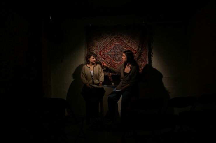 Forgiving (My Mother) follows a framing device of two actors working through a script about two sisters who have just shared a difficult dinner with their mother. Then the play takes a meta approach, we see layers of performance fold into itself focusing on forgiveness, determinism and theatre itself. What begins as a witty and aloof start ends in a deeper moment of reflection and existentialism.