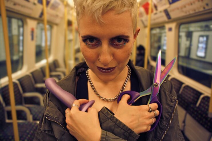 With a pair of scissors hanging ominously from a chain above for the duration of the piece, we are bombarded with questions, sensations, and evocative descriptions that really paint out the world beyond the tiny, intimate studio stage. With direction from Isobel Jacob, Haberfellner sells this breakneck pace with an unmatched commitment and captivating energy that doesn’t let up for a breathless 50 minutes. Carefully chosen moments of direct address pull every member of the audience in, whether you become the couple cuddling on the train, a club-goer on the dance floor, or Andrew Garfield himself, its impossible not to be drawn into Frankie’s confusing, overwhelming life.