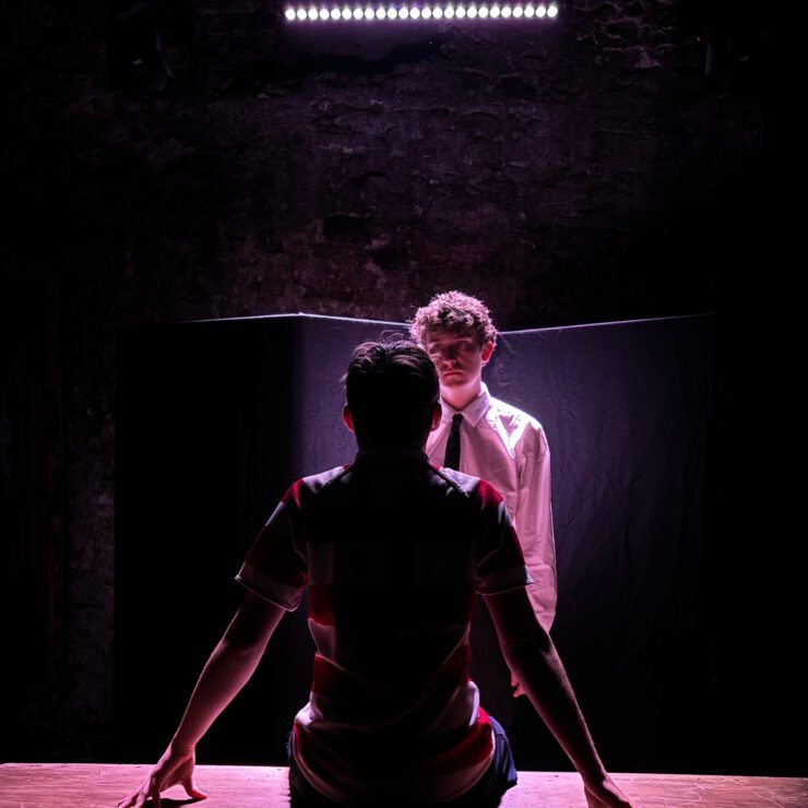 This two-hander sees Ned Blackburn stay in situe throughout as Johnny, who navigates mandatory church services by managing a Britney stan account on Instagram, and intersperses sections of his PSHE sex education lessons with bleak and boisterous Grindr encounters. Drama soon ensues as Will Walford’s gruff but charming Harry begins hooking up with Johnny in between class, and Johnny begins to wonder precisely what’s driven his only other openly Gay classmate away from the school.