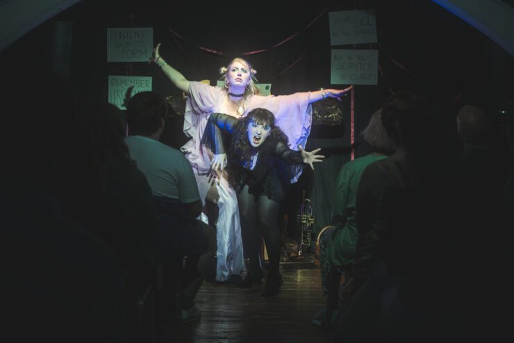 Grace & Jordana: We’ve been developing this show since February 2024, when we debuted our first WIP also at the Glitch Waterloo (before its recent remodel). Since then we’ve taken the show to Brighton, Camden, and Edinburgh Fringe and the Seven Dials Playhouse in the West End. Each run of the show has changed fairly significantly, between each iteration, we’ve done rewrites based on audience feedback and our own experience performing. It goes beyond a tribute to Sondheim, it is a séance with original music that channels the spirit of Sondheim to explore the deep, parasocial connection many of us have with those we have lost. While being a laugh a minute!