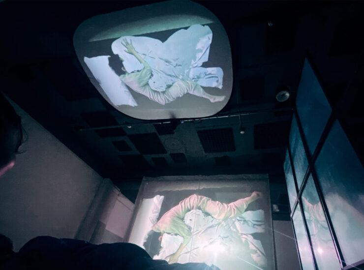In this latest version, which is a one-on-one in-person performance, the audience lies down on a quilt-covered bed to experience the show. Then, as the bed is monitored and mediated through multimedia technology, they can watch their own body merge in real time with a landscape on screen. It can be a very still, quiet, and immersive experience—just you and the imagery—or you can move around more freely, even dance a little, and really play with the merging of your body and the visual world.