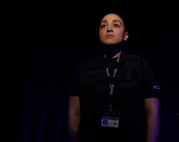 Gemma: Audiences can expect an intimate, fast-paced 45-minute drama set in a black box theatre where they’re right in the heart of the action. The story follows Irie, a young woman navigating the complex world of the Met Police, and the audience experiences the highs and lows of that journey alongside her. It’s intense and sometimes deeply uncomfortable—we give trigger warnings upfront—but it’s not all heavy. There are lighter moments scattered throughout that offer relief and reflect how even in difficult times, people find ways to cope and connect.