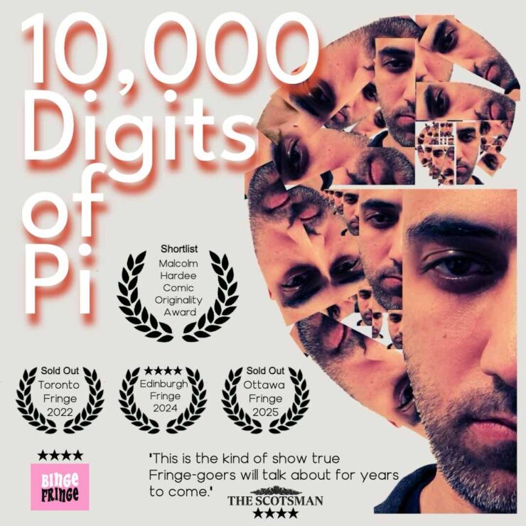You can catch 10,000 Digits of Pi at Thistle Theatre at Greenside @ Riddles Court and PBH’s Free Fringe @ Banshee Labyrinth from 1-9, 11-16, 18-22 & 25 of August at 22:00 and 01:30. (55/60 mins). Tickets are available through the EdFringe Online Box Office.