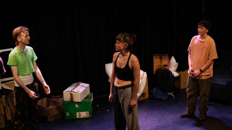 For their first production as a self-producing (!) theatre company, Second Adolescence are keen to show off their big bag of creative ideas from the word ‘Go’. The endlessly overlapping and intertwined dialogue of the opening scene demonstrates serious mastery. It is slick, choreographed, yet steeped in authenticity.