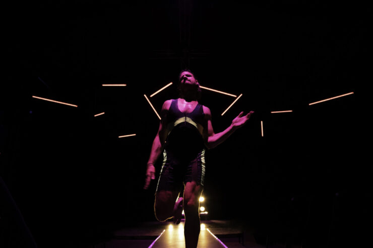 The visuals of this piece are nothing short of astounding. Kevin Murphy’s lighting design is like nothing you’ve ever seen before, all played in glorious time with the music and action onstage. We’re not just talking a bit of strobe, there’s LED strips on the floor, lasers in the sky, there’s even a bog-standard torch being used in the most striking way.