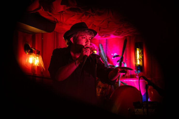 Deep down below in the basement of Paradise at Augustines, Tom Waits is getting ready to serenade his audience. Only… this is not Tom Waits himself, but drag king Mr Brake Down channelling the spirit of the artist into the room through his gravelly voice and bad boy charms. Backed by Sophie Siobhán (sax, keys, guitar), Steve Lincoln (percussion) and Siân Peters (MD, rhythm, arrangements) Mr Brake Down takes us through some of Waits’s best loved songs, delivered with fresh flair and the occasional humorous lyric change.