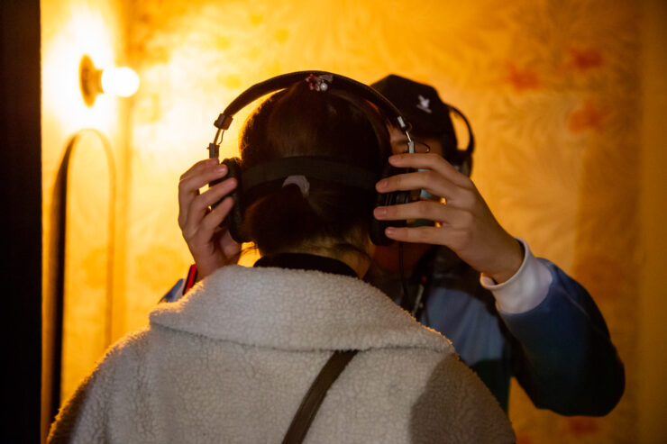 Journey to the West is underpinned by themes of migration, transportation, and displacement. You are led into an unseen room and guided into a spinning chair. You’re given headphones, and the journey begins. As the chair is bumped, shifted and rolled, the audio narrative jumps from scene to scene, the surreal story placing you in a variety of roles and situations which all connect back to a concept of not quite knowing your place, and not being sure of where to call home.