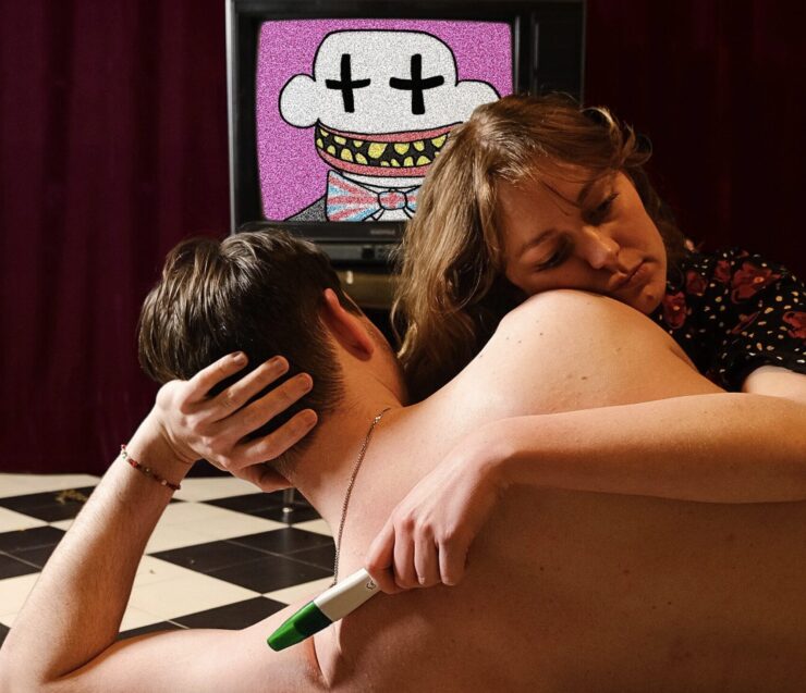 Set in a dystopian future where parents-to-be must pass a test or face getting the foetus aborted by the state, Do Astronauts Masturbate in Space? follows the story of Lily and Gareth, played by Briony Martha and Zak Reay-Barry, as an accidental, but welcomed, pregnancy pushes them into a parenting camp and brings their relationship to the edge.