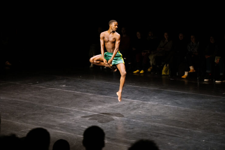 From the moment Hiltinho hops onto stage, bouncing and pulled by invisible entities dragging him into new realms, the performance takes flight. His precise footwork, unmatched confidence as he taps into Passinho, and boundless energy elevate him into double spins and leaps across the stage. He caresses his face and body with tenderness, feeling the music and taking care of himself.