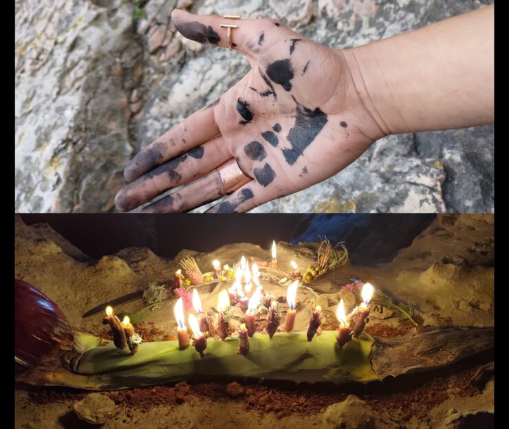 A custom-made altar made of organic materials gathered in the local area serves as a backdrop for the nature-inspired writings from his upcoming book, Notes for Ritual. The meditative space he creates with his sparkling presence, thoughtful words, easy jokes and stunning art gently immerses the audience in a collective experience of music-making and ritual. This intimate and magical performance is an invitation to reflect on our connection to our bodies, nature, love and the unseen.