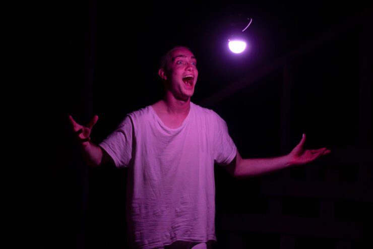 Daniel: Creating my version of Only Bones was truly an insane moment for me. I had been a fan of Thom’s work for years, especially his Only Bones version – it was the first show that I saw that made something click in my mind and made me go: “this is the kind of theatre I need to be making.” So when he invited me to make my own version, I probably almost passed out from excitement. I got to develop it with Thom in the room, which is not the case for lots of the other creators (I’m pretty sure Thom hasn’t even seen one or two of the shows), along with a group of my closest friends and collaborators. We basically locked ourselves in a dark rehearsal room with a light bulb for two weeks and tried to find every single thing we could do with it. We maybe went a little insane.